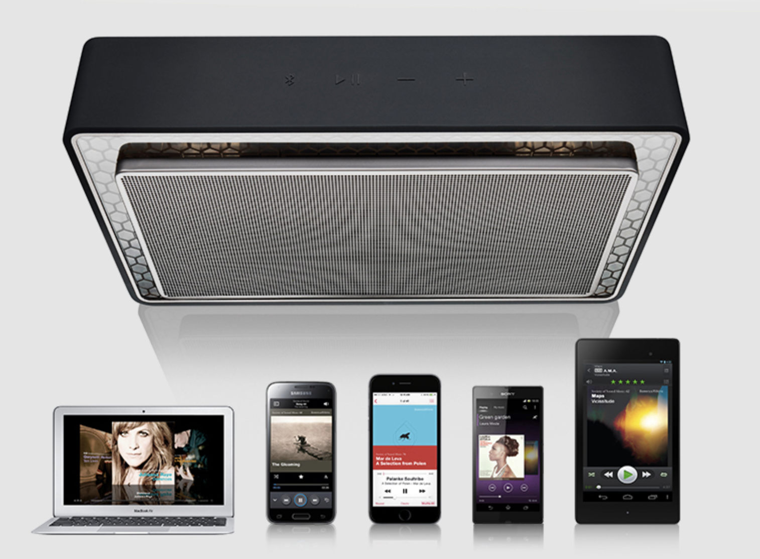 - dva širokopásmové reproduktory napájené výkonnými Class D zesilovači